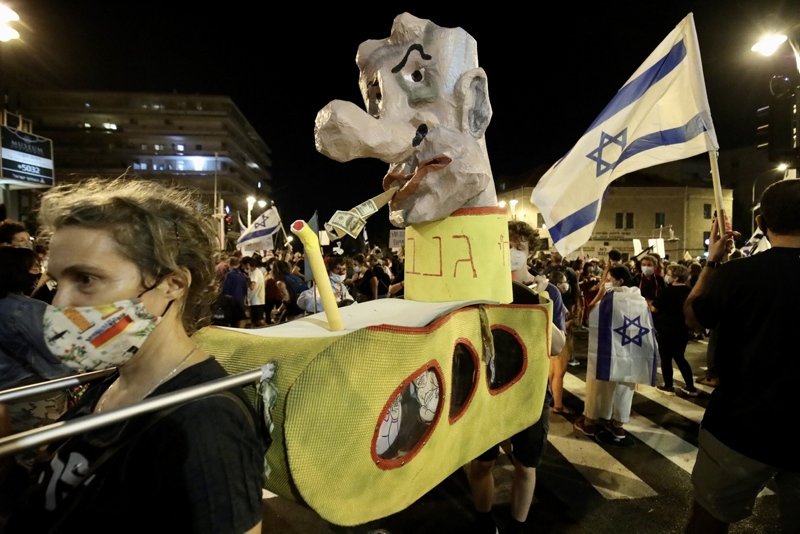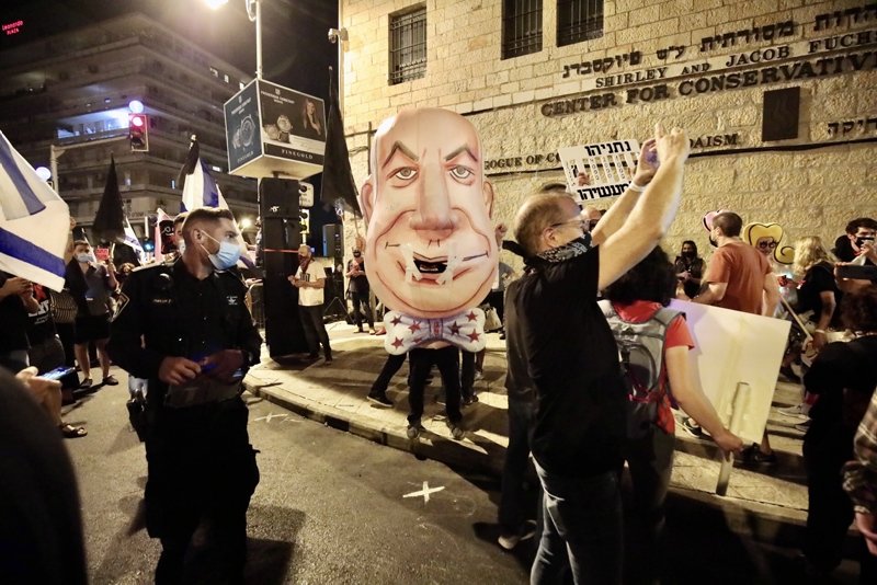 For over three months, thousands of people have thronged the streets of central Jerusalem near Netanyahu's residence, calling on him to step down. Protesters say Netanyahu shouldn't remain in office when he is on trial for corruption charges and accuse him of bungling the response to the coronavirus crisis. Many of the protesters are young, educated Israelis who have lost their jobs because of an economic downturn.