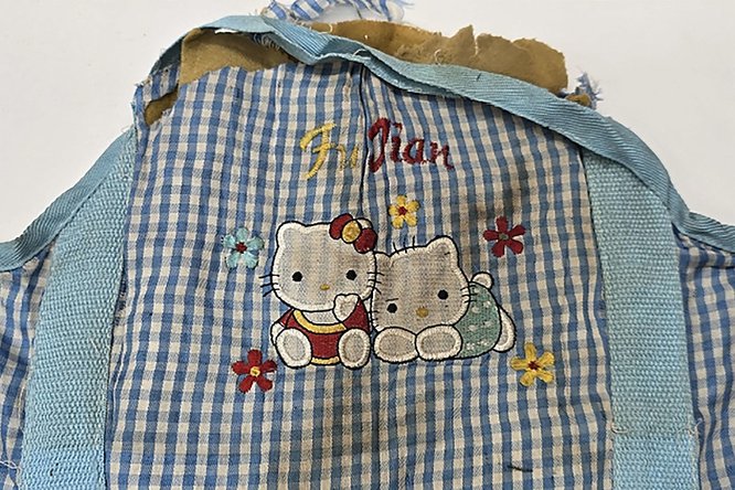 The trash contained worn items of clothing with Mickey Mouse, Winnie the Pooh and Hello Kitty characters as well as socks, gloves and children's clothes that had been heavily patched up, masks with fabric stitched by hand and two layers of shirts sewn together.