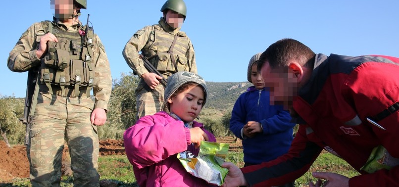 The Turkish military escalated its aid activities as Syrian families that live in the Sorke village of northern Afrin asked for help, saying they do not have enough food. Informing the Turkish Red Crescent on the issue, the soldiers delivered the aid packages that came from the organization to the Syrian families on Friday.