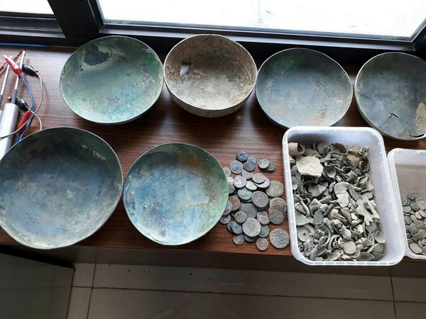 Some 4,567 gold and bronze coins dating back to the Roman and Byzantine periods, six bronze plates from the Islamic period, 251 archeological objects, and four treasure-hunting tools were seized.