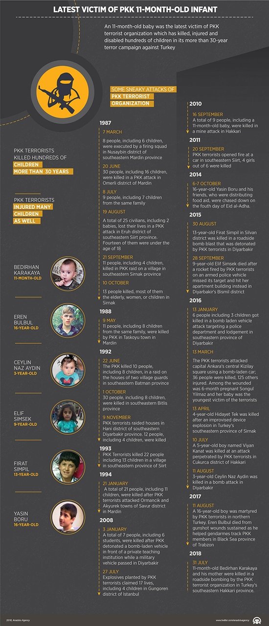 An 11-month-old baby was the latest victim of PKK terrorist organization which has killed, injured and disabled hundreds of children in its more than 30-year terror campaign against Turkey.