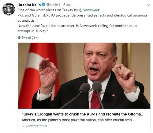 Turkey's presidential aide İbrahim Kalın on Saturday called an article by U.S.-based Newsweek magazine "one of the worst pieces on Turkey".
