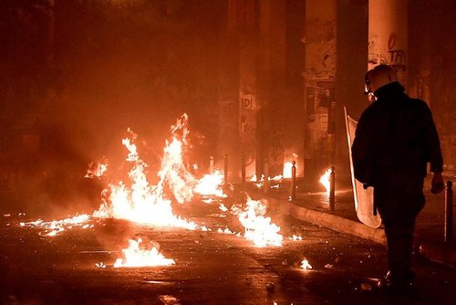 Police said a group of about 300 in the capital erected barricades and threw firebombs and rocks at officers, who responded with tear gas and stun grenades on Saturday night. In Thessaloniki, Greece's second-largest city, officers faced off with about 200 anarchists.