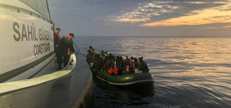 The Turkish Coast Guard rounded up 23 irregular migrants, including women and children, in the Aegean sea off Izmir province while trying to cross the sea by boat.