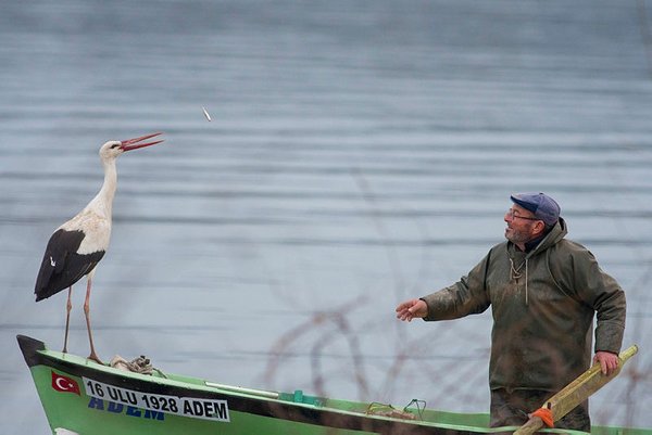 Adem Yılmaz and the stork's friendship started seven years ago, when the fowl perched on Yılmaz's fishing boat at Lake Uluabat and was fed by him.