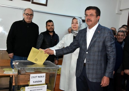 In western Izmir province, AK Party's candidate Nihat Zeybekci cast his ballot in Bornova district.