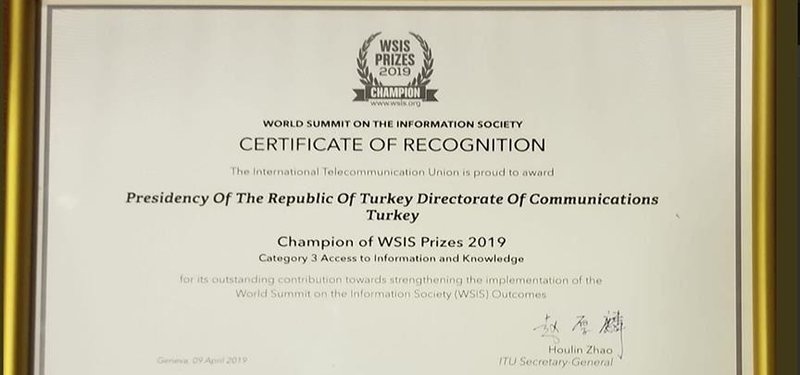 "CIMER is awarded the 'Best Project' by The International Telecommunication Union of UN during the World Summit on the Information Society in Geneva in terms of access to information and knowledge," Fahrettin Altun said in a tweet.