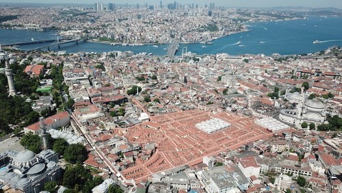 The long-delayed restoration of the 558-year-old structure's rooftop, covered with wrongly placed water tanks, antennas and air conditioning equipment causing leaks during rainy weather, was launched in July 2016. The roof and tiles were further damaged during the filming of the 2012 James Bond movie "Skyfall," which features a motorcycle chase scene involving Bond on the scenic rooftop of the historic bazaar, sparking public outrage at the time.