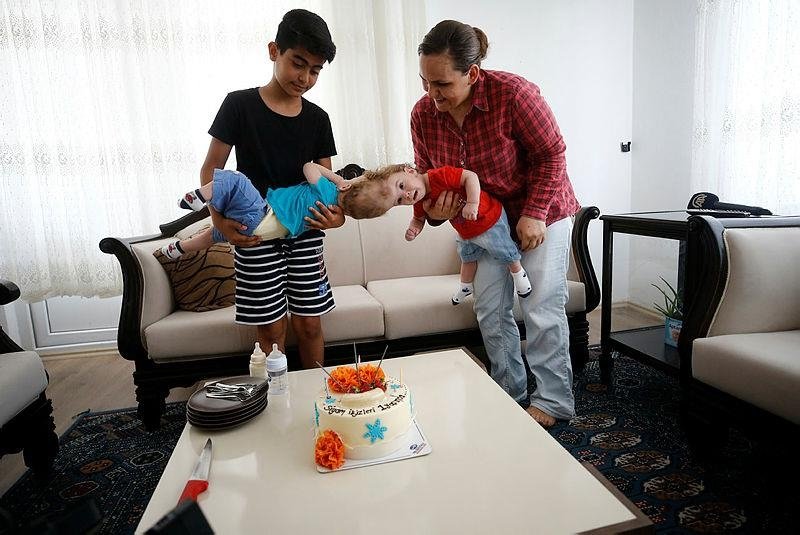 The Evrensel family celebrated on Friday the first birthday of their conjoined twins, Derman and Yiğit, in the Mediterranean province of Antalya, Turkey.