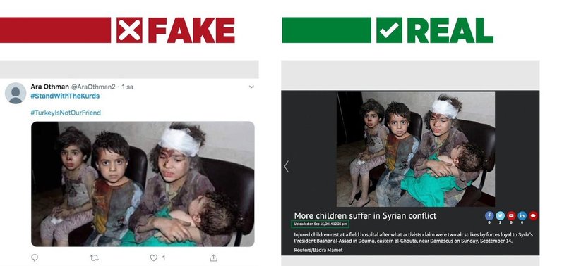 Also, a photo taken in Syria's eastern Ghouta in September 2014 of injured children was attributed to the Turkish operation.