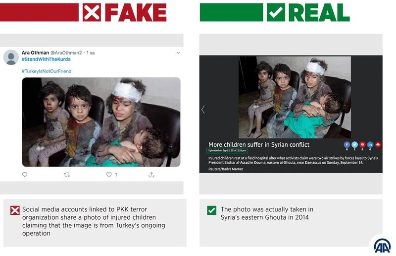 They continue using photographs of a different scene and time to undermine Turkey's peace efforts in northern Syria.