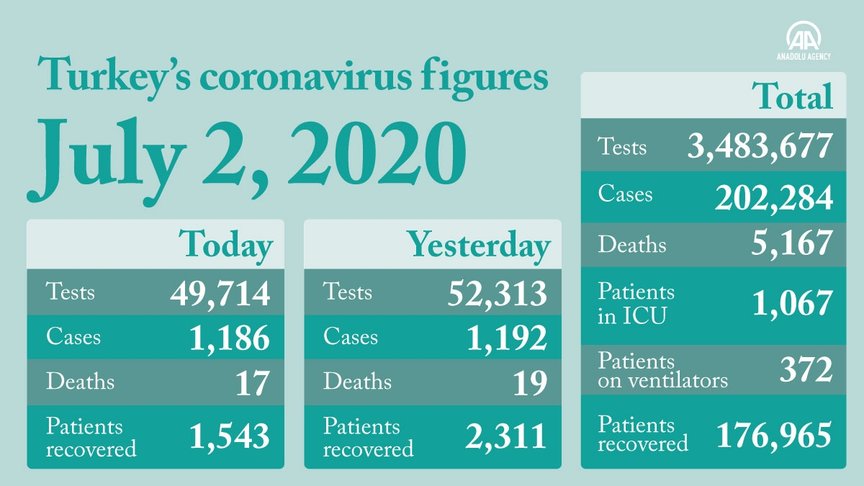 Citing the Health Ministry data, Fahrettin Koca said on Twitter that a total of 1,543 more COVID-19 patients recovered in Turkey over the past 24 hours, bringing the overall number to 176,965.