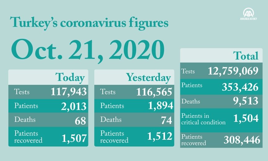 In a tweet, Health Minister Fahrettin Koca once more urged the public to follow measures to stem the virus' spread and "reduce the burden" of healthcare professionals.