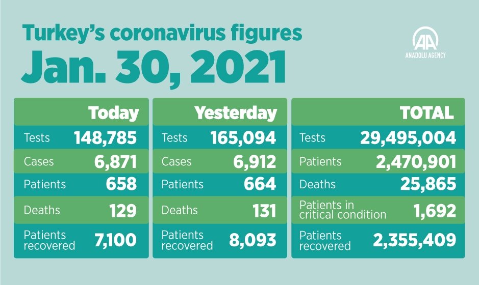 More than 29.4 million coronavirus tests have been done in Turkey to date, with 148,785 since Friday.