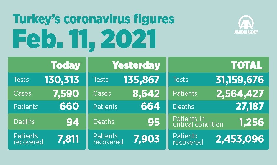 More than 31.1 million coronavirus tests have been conducted in Turkey to date, with 130,313 since Wednesday.