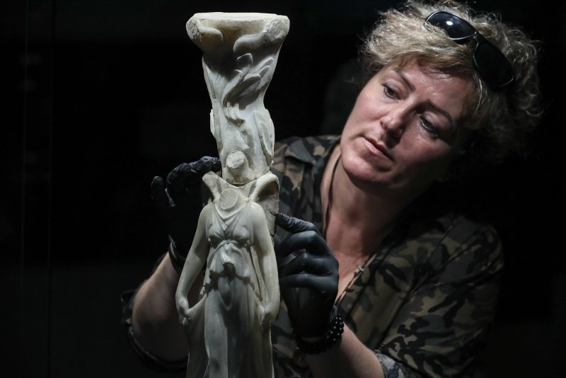 A 49-centimeter (19-inch) marble column dating back to the Hellenistic era is the centerpiece of the exhibit.