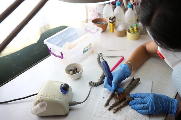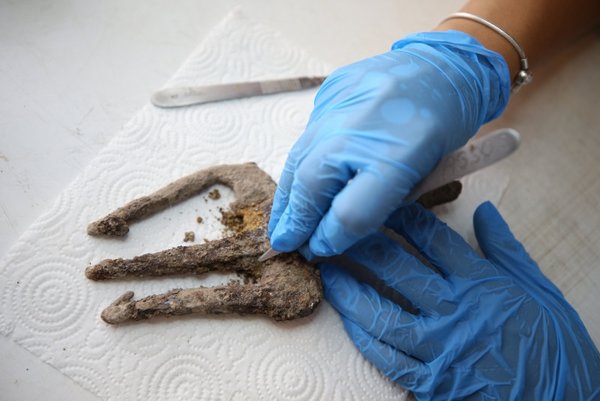 An expert restorer worked on the archeological find to clear the trident of soil and oxidized agents on it.