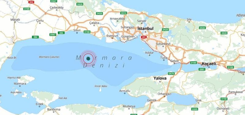The Disaster and Emergency Management Presidency announced that the magnitude 5.0 earthquake occurred at 2:55 PM in the Sea of Marmara, off the coast of Marmaraereğlisi, Tekirdağ.