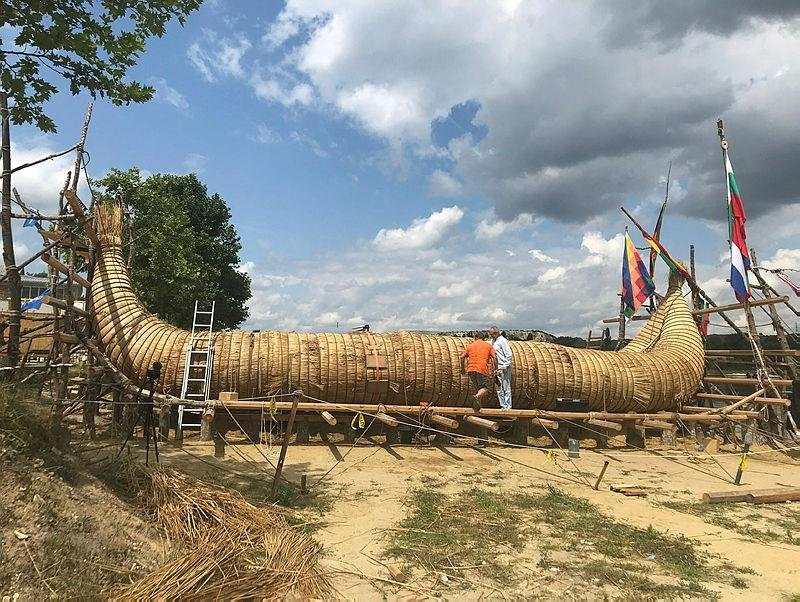 The 14-meter-long ship was built in Varna, Bulgaria with reeds brought from Bolivia.