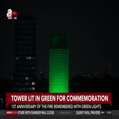 Grenfell Tower was among a dozen buildings illuminated Green in London on Wednesday night as the local community began 24 hours of poignant commemorations for the tragedy that killed 71 people a year ago.