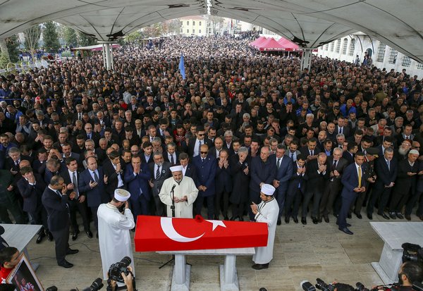 Many prominent figures -- including Prime Minister Binali Yıldırım, Deputy Prime Minister Hakan Çavuşoğlu, Justice Minister Abdulhamit Gül, Labor and Social Security Minister Julide Sarıeroğlu, Youth and Sports Minister Osman Aşkın Bak, Turkey's Weightlifting Federation President Tamer Taşpınar and Basketball Federation Chairman Hidayet Türkoğlu-- attended the service at Fatih Mosque.