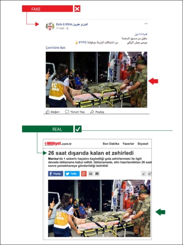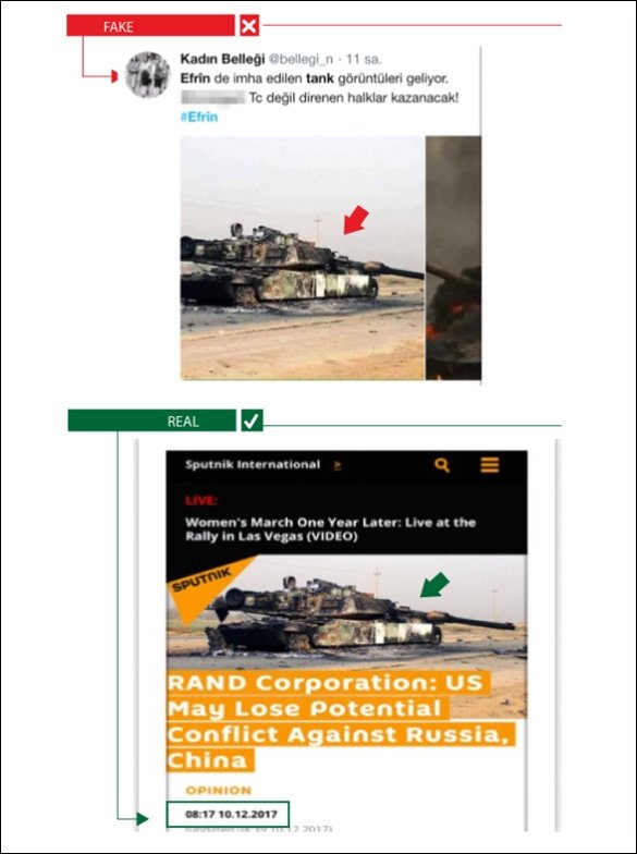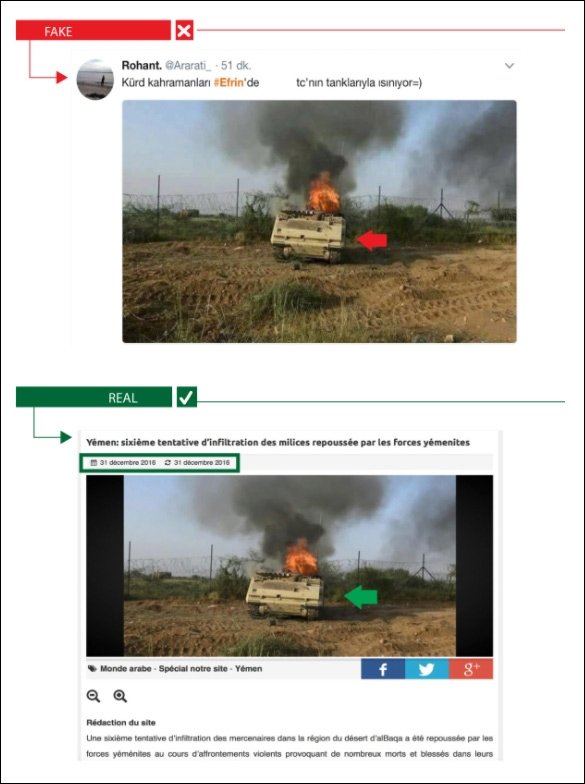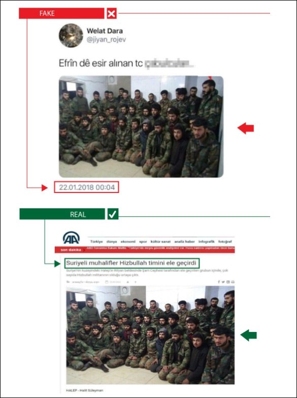 Also, on Sunday three photographs, shared by pro-PKK/PYD accounts on social media which were claimed to be taken during Turkey's operation in Syria's northwestern Afrin region, turned out to be old photos that were captured during different past incidents.
