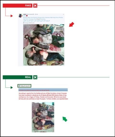 In another photo falsely labelled "Turkish Armed Forces are killing children in Afrin" actually shows children slain in a March 2014 Daesh attack.
