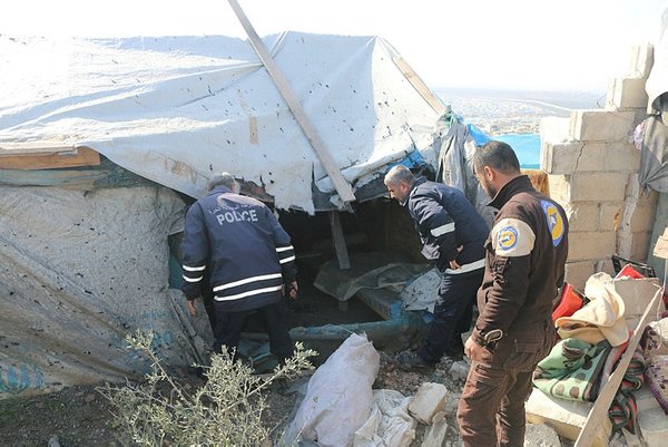 One civilian was killed and seven others were injured Tuesday when the PYD/PKK terrorist group shelled a refugee camp in Idlib province in northwestern Syria.