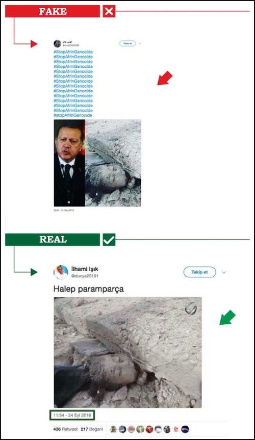 Disinformation about the Turkish military began soon after Turkey launched the operation, with supporters of the PYD/PKK terrorist organization posting fake and distorted photographs on social media and falsely claiming they were from Afrin.