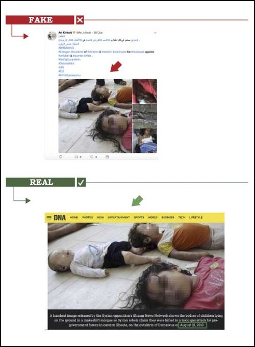 Several images shared on social media under the lie "Turkish army targets children in Afrin" actually took place in Aleppo, Eastern Ghouta or in Homs where in fact the Assad regime had targeted children.