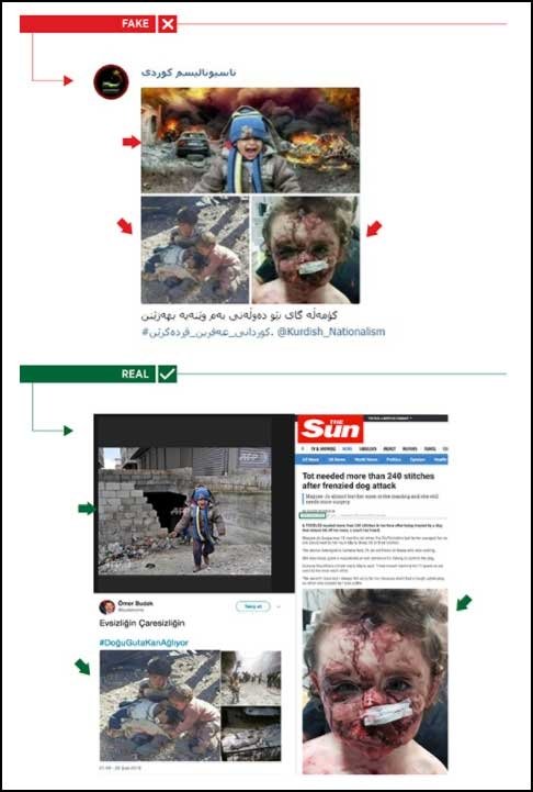 PYD/PKK supporters used three photos taken at different times and places trying to smear Operation Olive Branch of the Turkish Armed Forces and Free Syrian Army, which aims to clear Afrin of terrorists.