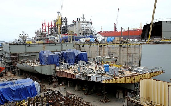 The construction of Turkey's first indigenously-built "multipurpose amphibious assault ship -- the TCG Anadolu", which can be configured as a light aircraft carrier, in Istanbul is gathering pace, according to the head of a Turkish business body.
