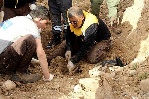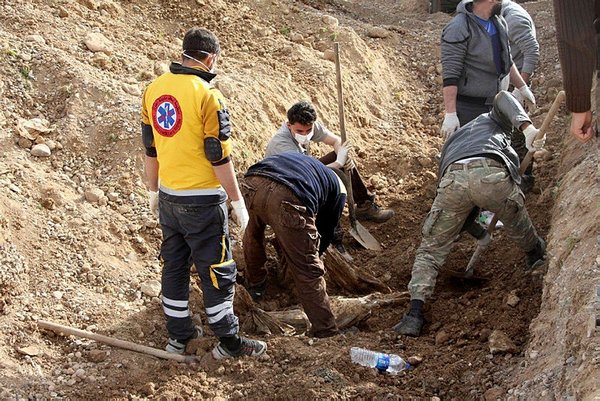 A mass grave containing 59 bodies of Free Syrian Army (FSA) members killed by PYD/PKK terror group two years ago was discovered in Syria's Afrin region.
