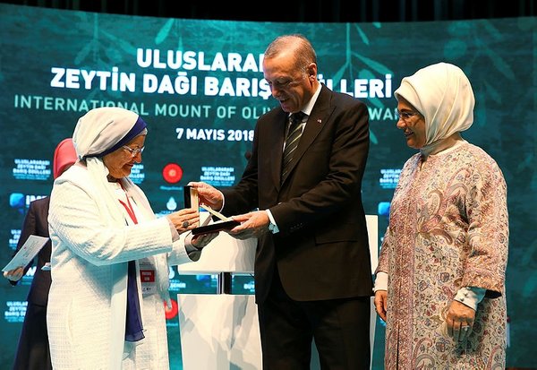 Speaking at the International Mount of Olives Peace Awards at the Cemal Reşit Rey Concert Hall in Istanbul, President Recep Tayyip Erdoğan said, "Palestinians are the symbol of all oppressed people in the world because of the persecution, massacres and injustices they have been subjected to."
