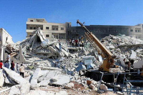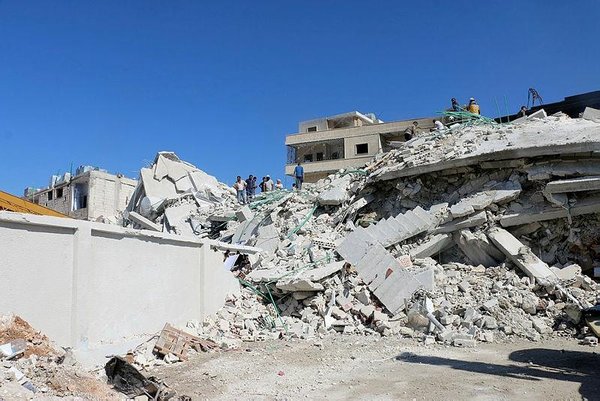 An AFP correspondent at the site in Sarmada in Idlib province near the Turkish border said the explosion of unknown origin caused two buildings to collapse.
