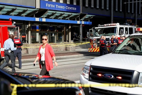 Police Chief Eliot Isaac said the shooter opened fire early Thursday morning at the loading dock of the Fifth Third Bank building. Isaac said the gunman then entered the bank's lobby where he exchanged gunfire with police. It's unclear if the gunman shot himself or was shot by officers.