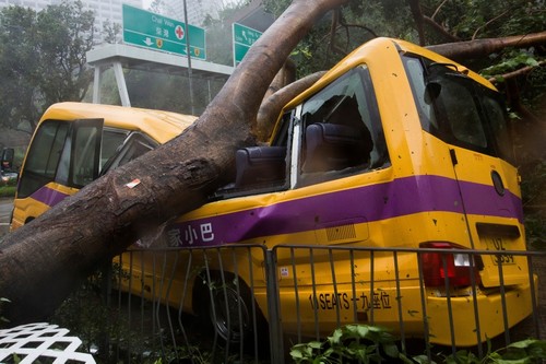 The storm also broke windows, felled trees, tore bamboo scaffolding off buildings under construction and flooded areas with sometimes waist-high waters, according to the South China Morning Post.