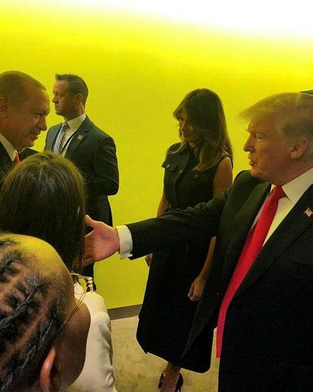 In photographs posted on the social media site, Trump is seen extending a handshake to Erdoğan. Trump's wife, Melania, joined their chat.