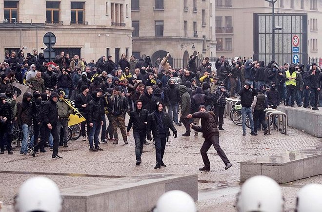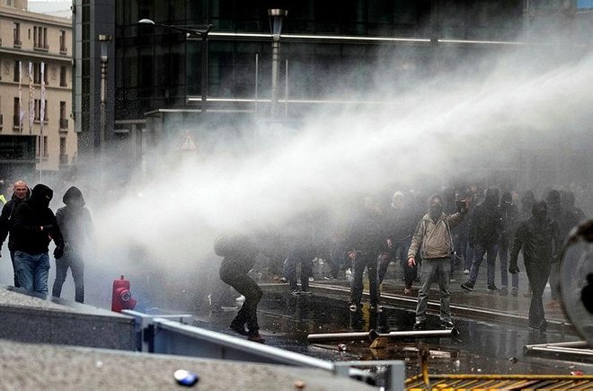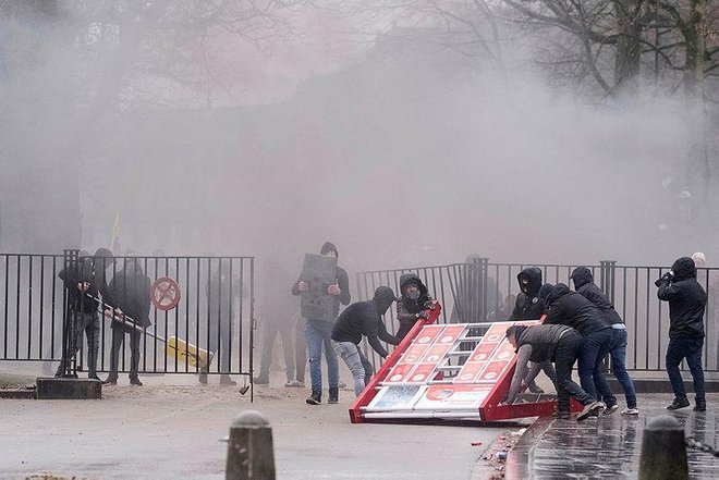 Police deployed teargas and water cannon after scuffles broke out Sunday as thousands of people answered a call by far-right groups to reject a UN migration pact.
