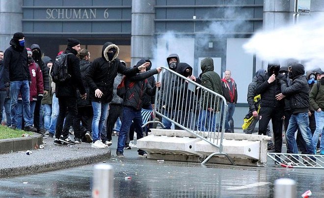 Police said some 5,500 people rallied in Brussels' European quarter housing a number of EU institutions. Some held aloft banners bearing slogans including "Our people first" and "We have had enough, close the borders."