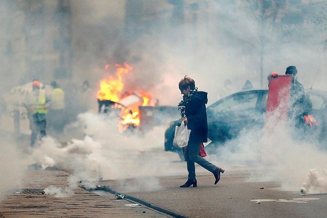 French security forces fired tear gas and flash-balls after a march through picturesque central Paris went from peaceful to provocative Saturday as several thousand protesters staged the yellow vest movement's first action of 2019 to keep up pressure on President Emmanuel Macron.