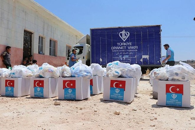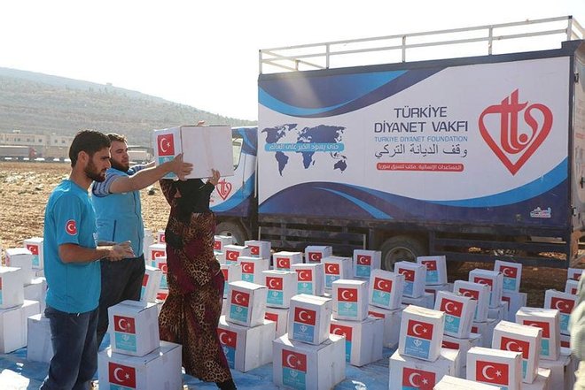 The aid from the group, which is tied to the state Religious Affairs Directorate, went to Syria's Idlib region and other war-torn areas liberated during Turkey's Operation Euphrates Shield and Olive Branch.