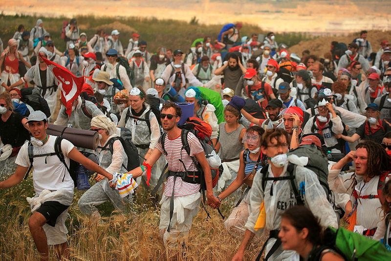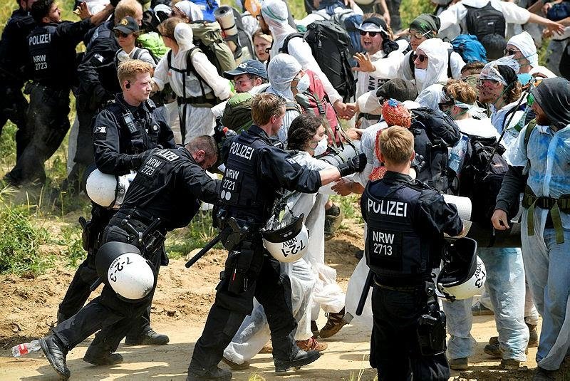 Earlier Saturday, dozens of protesters succeeded in temporarily blocking railroad tracks used to transport coal. The vast majority of the thousands of demonstrators in and around the western German village of Hochneukirch near the mine and adjacent power plants remained peaceful.