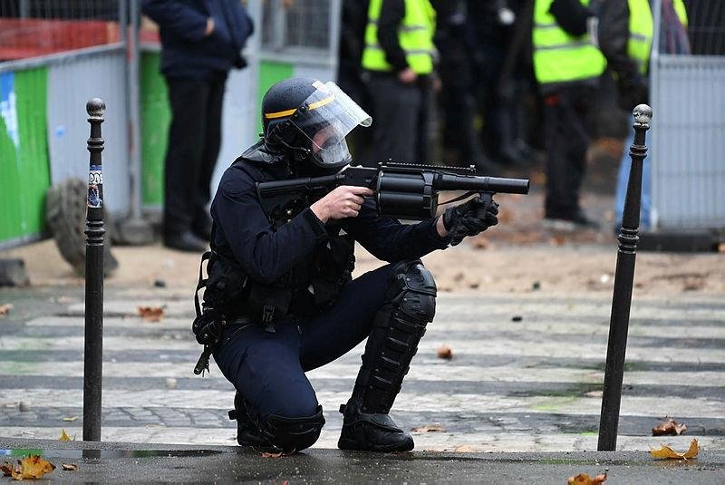 France's BFM television showed images of police firing tear gas to disperse the protesters, some hooded, who tried to block the road with metal barricades, dustbins and other debris.