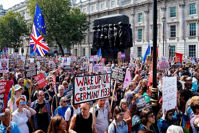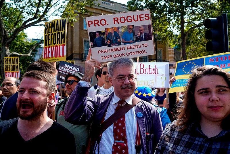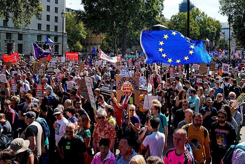 The crowds were galvanized by Johnson's decision to shutter Parliament for several weeks when a debate about Brexit plans had been expected.