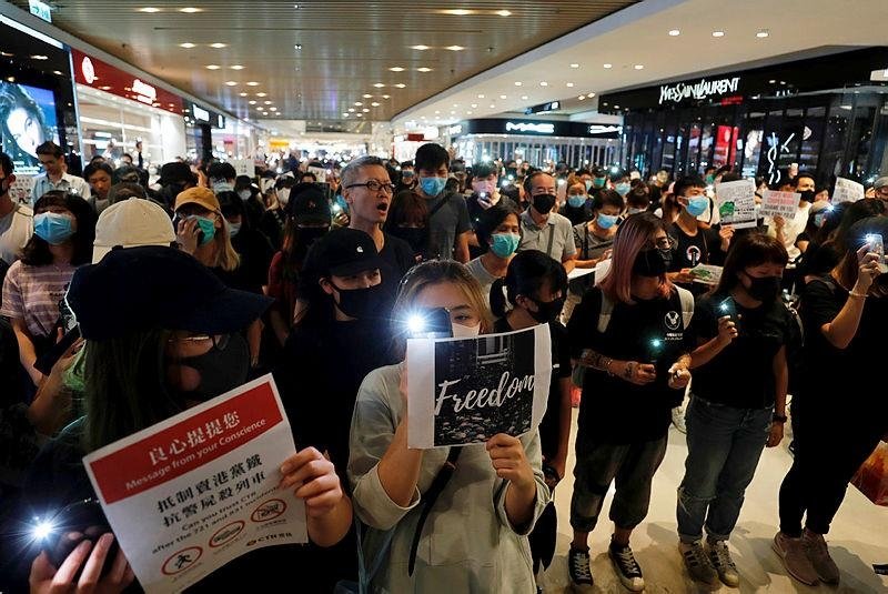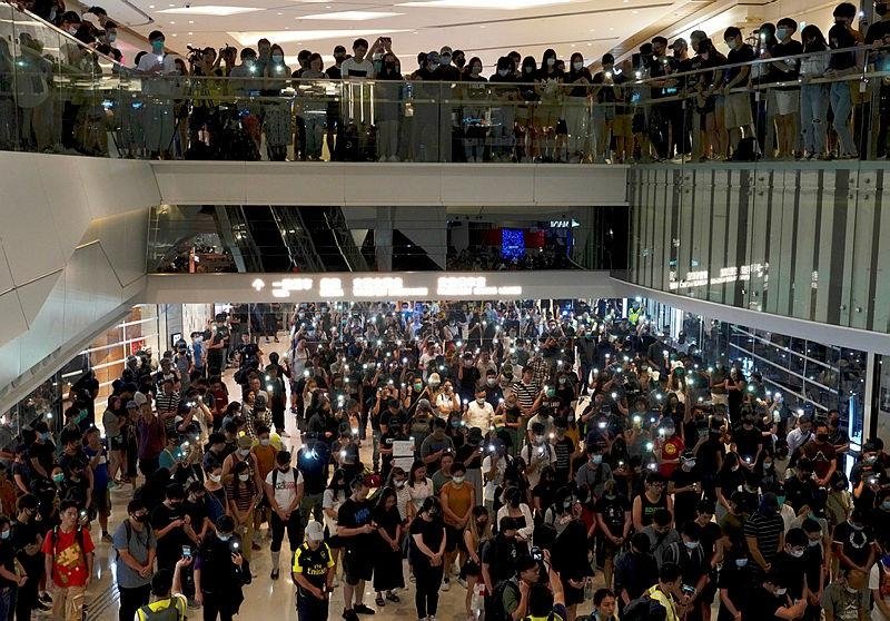 Later Saturday, protesters gathered at a mall in Yuen Long, where men with sticks beat protesters and subway passengers there on July 21 in an incident that caused controversy in Hong Kong.