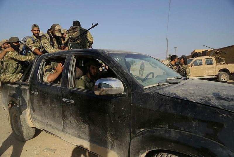 Anadolu Agency reporters in Turkey's border district of Akçakale in southeastern Şanlıurfa province shot a footage in which SNA fighters can be seen cheering after taking control of the Tel Abyad city center.