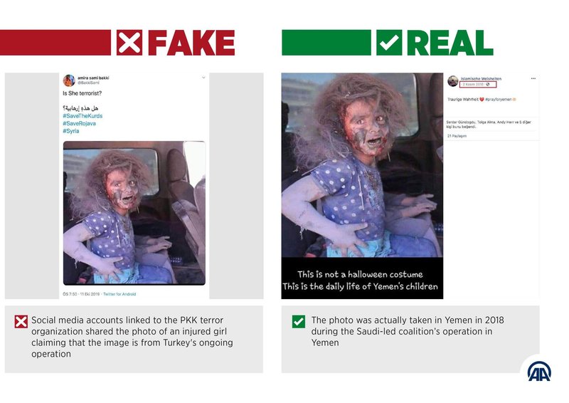 Terrorist sympathizers are using images of children injured in the past in different places in Syria as if they had been harmed during the ongoing Peace Spring Operation. These fake pictures are then being circulated on social media to smear Turkey's anti-terror action. pic.twitter.com/2opiubuL7o