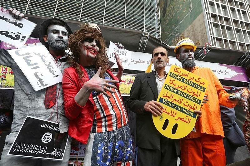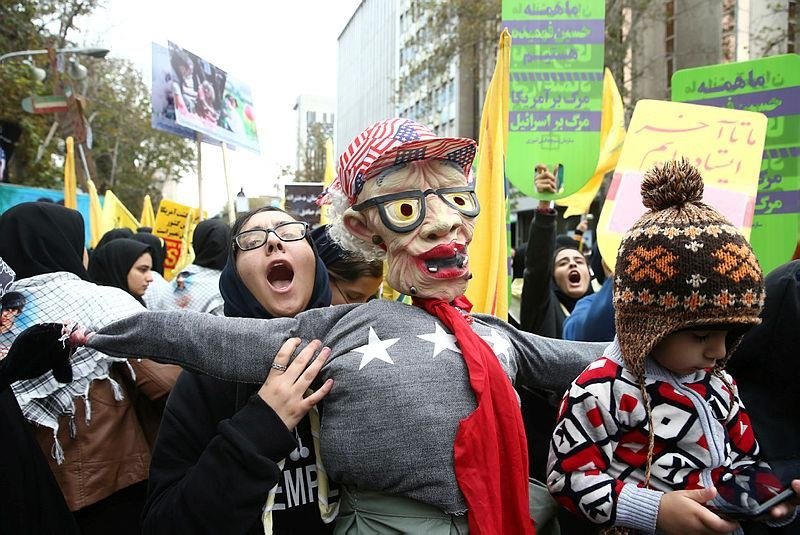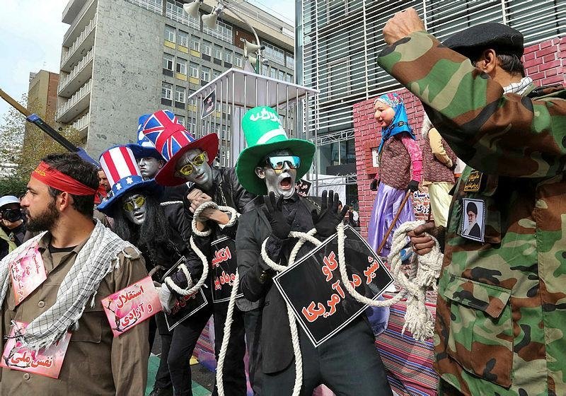 With anti-American slogans and effigies mocking President Donald Trump, thousands rallied outside the former US embassy in Tehran on Monday to mark the 40th anniversary of the Iran hostage crisis.