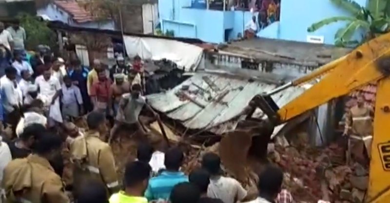 The dead included two children in the village in the southern state of Tamil Nadu, which was being pounded by torrential rain, a police official told AFP.